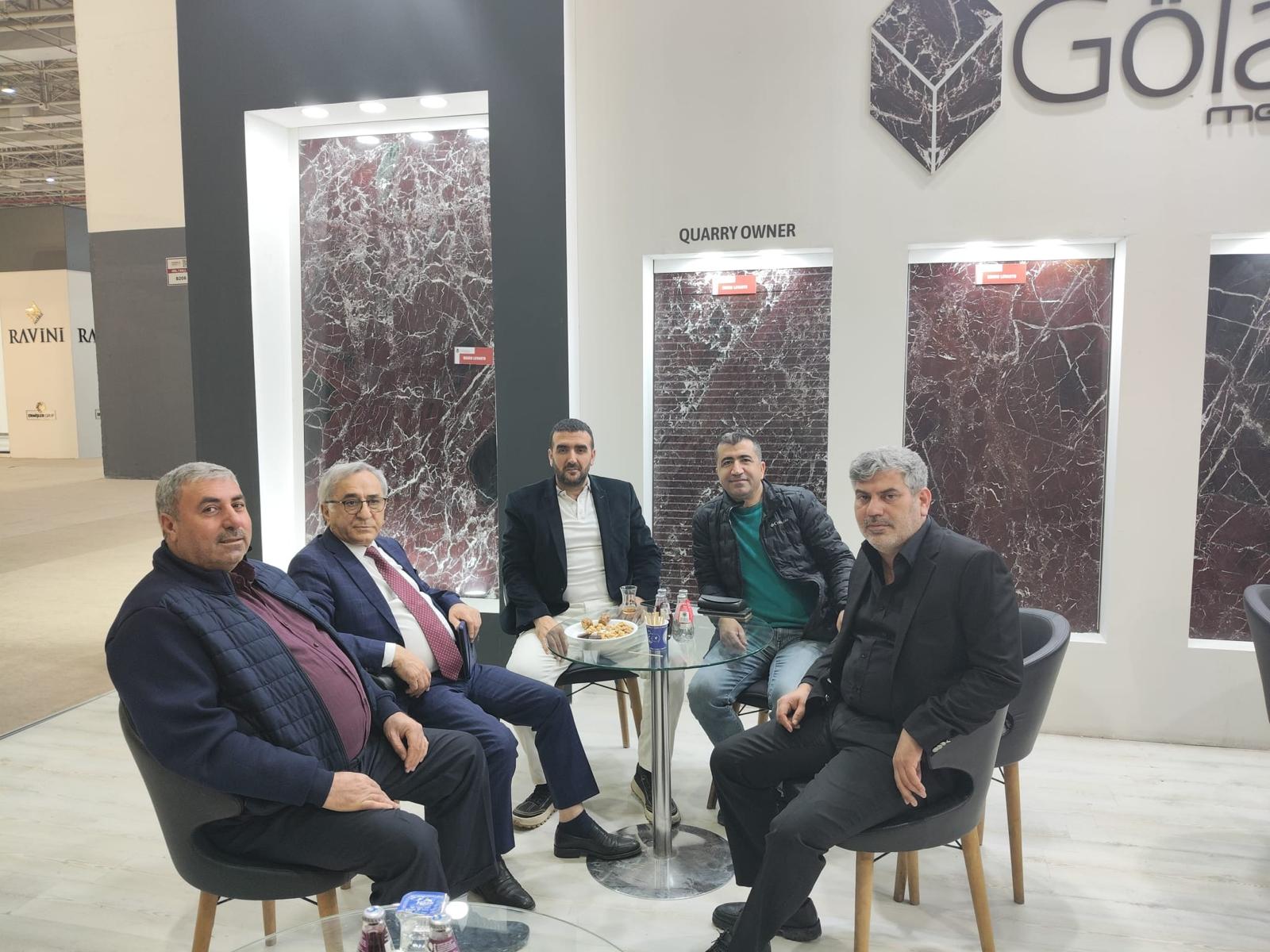 Başkan Suat Öztürk; Yönetim Kurulu Üyeleri ile birlikte fuar kapsamında, mermer sektöründe faaliyet gösteren bölge firmalarımızın stantlarını ziyaret ederek incelemelerde bulundu. Yönetim Kurulu üyelerinden İbeydullah Tuzsuzoğlu’nun Elazığ Madencilik, Muhammet Akdağ’ın Akdağ Mermer ve diğer firmalardan Alacakaya Mermer, Romer Mermer ve Gölalan mermer firmalarının stantlarını ziyaret eden Başkan Suat Öztürk, sergilenen ürünler ve sektörel gelişmeler hakkında istişarelerde bulundu.